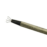 Cool tool, fun toy. Push the plunger to reveal the prongs. Release the plunger to grab and retain small parts!