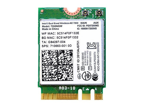 Intel M.2 (2230) Dual Band Wireless-AC 7260 802.11ac Dual Band 2x2 Wi-Fi + Bluetooth 4.0
