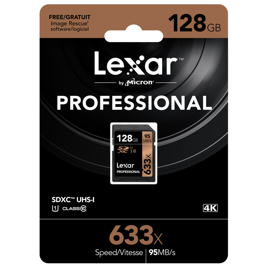 Lexar Professional 633x 128GB SDXC UHS-1 Card - Upto 95MB/s U3 C10 V30