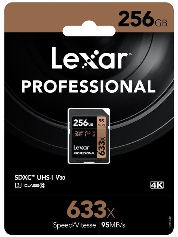 Lexar Professional 633x 256GB SDXC UHS-I Card - Upto 95MB/s U3 C10 V30