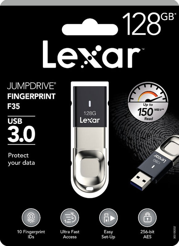 Lexar JumpDrive F35 128GB Finger Print USB3 Flash Drive - Upto 150MB/s