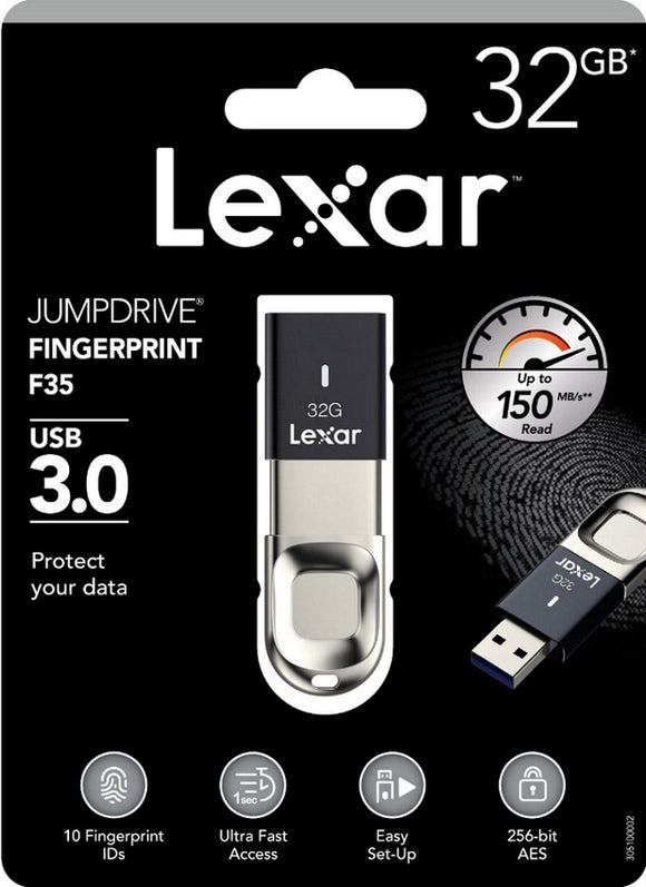 Lexar JumpDrive F35 32GB Finger Print USB3 Flash Drive - Upto 150MB/s