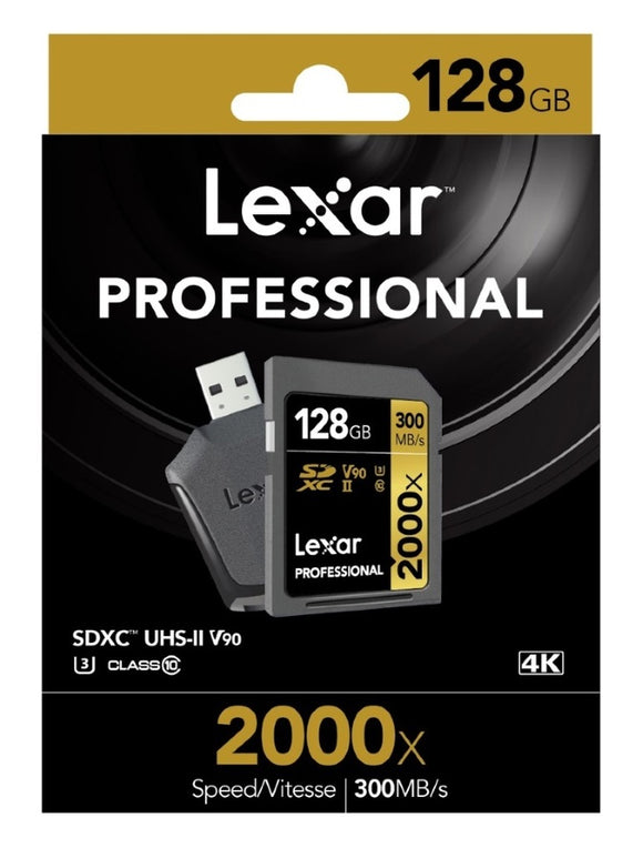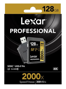 Lexar Professional 2000x 128GB SDXC UHS-II Card - Upto 300MB/s U3 C10 V90