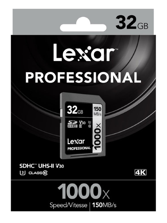 Lexar Professional 1000x 32GB SDHC UHS-II Card - Upto 150MB/s U3 C10 V30