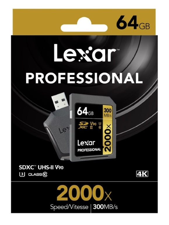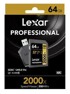 Lexar Professional 2000x 64GB SDXC UHS-II Card - Upto 300MB/s U3 C10 V90