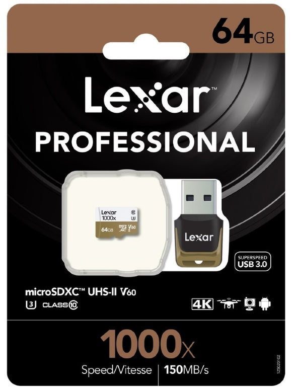 Lexar Professional 1000x 64GB microSDXC UHS-II Card - Upto 150MB/s U3 C10 V60