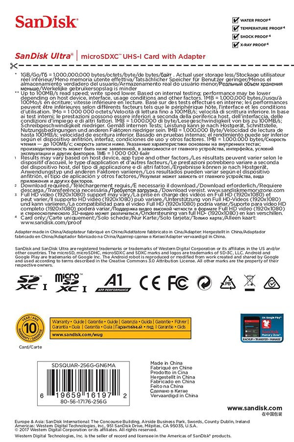 The SanDisk Ultra 256GB UHS-I U1 Full HD Video microSD Card w/ SD Adapter is a versatile SD card which can be used in a number of devices.